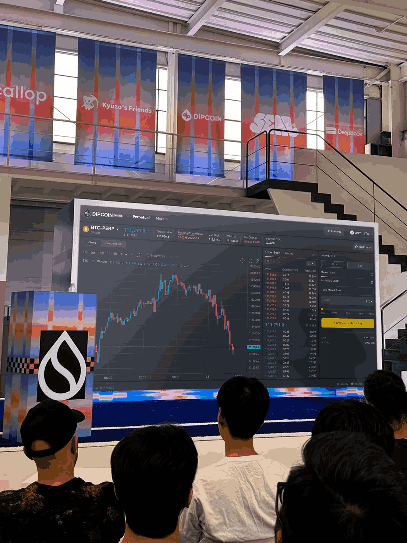DipCoin’s booth quickly became one of the busiest spots. The team’s limited-edition merch giveaways were gone in no time, attracting crowds of developers and trading enthusiasts eager to explore DipCoin’s latest progress. Many scanned the QR codes to test the newly launched perpetual trading testnet.